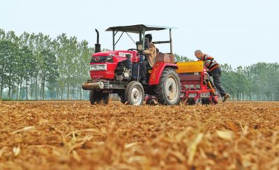 10月8日,夏邑縣桑堌鄉(xiāng)苗樓村村民利用晴好天氣,使用農(nóng)業(yè)機(jī)械搶種小麥,田間地頭到處麥播忙。苗育才攝