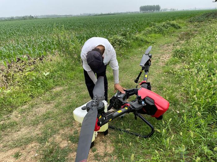 據(jù)介紹,孫會承包了村里的1000畝農田,種上了小麥、玉米還有紅薯等農作物。以前她都是租用過別人家的無人機打藥、施肥,覺得效果不錯,收成也好,今年干脆自己買了兩架無人機。談及購買初衷,她表示,租用別人無人機要提前預約,有時候還沒排上隊,農時就過了。這些莊稼生長得快,施肥、打藥前后就那幾天,過了農時就會大大減產。“今年3月初,我先花了6萬元買了一臺大功率的極飛P80,用得很方便順手,所以6月份我又花3萬多元增加了一臺小型的無人機V40。兩臺無人機可以兼顧我這1000畝地的施肥、除草、打藥等多項作業(yè),不僅人省勁了,農作物的長勢也更好了。”孫會開心地說。