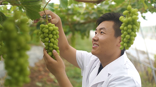 “這是陽光玫瑰葡萄,這是浪漫紅顏葡萄,這是紅艷香葡萄,這是.........”徐莊鎮(zhèn)第一批“能人返鄉(xiāng)”陸陽,穿行在星火農(nóng)業(yè)科技有限公司1200余畝的連棟鋼架大棚基地里如數(shù)家珍。