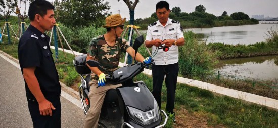 泰州市“護(hù)魚員”仇國祥、徐立新在長江岸線進(jìn)行禁捕巡查。