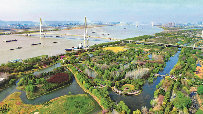 南京長江三橋生態(tài)濕地鶯飛草長、春意盎然,萬株綠植與江灘坡地、水體有機(jī)融合,呈現(xiàn)出春天最美的生態(tài)景觀。本報記者 余萍 攝