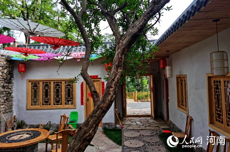 人民網(wǎng)洛陽5月8日電(張毅力)“來了。】炯t薯、手搟面,還有純正柴雞蛋。”五一小長假,洛陽市汝陽縣柏樹鄉(xiāng)窯溝村迎來了客流小高峰,村民馬盼盼在自家農(nóng)家樂“汝香園”門口笑臉迎客。