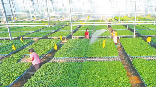 金秋時節(jié),在聊城市茌平區(qū)賈寨鎮(zhèn)耿店村育苗溫室大棚里,村民忙著分揀辣椒苗。