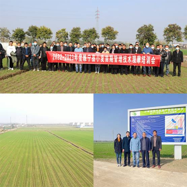 與會(huì)人員實(shí)地觀摩了綜合示范基地品種示范展示與推介篩選田、高產(chǎn)攻關(guān)田及5個(gè)不同播期播量試驗(yàn)示范、淮北地區(qū)稻茬小麥緩釋肥減施增效模式示范試驗(yàn)、不同耕作方式對(duì)小麥苗情素質(zhì)和小麥病蟲草害的影響試驗(yàn),以及長期秸稈還田下肥料合理減施對(duì)小麥綜合生產(chǎn)力的影響試驗(yàn)苗情長勢(shì),實(shí)地感受智能精量播種機(jī)的播種質(zhì)量及適時(shí)適墑適量播種的壯苗效果,切實(shí)體會(huì)“高標(biāo)準(zhǔn)整地、藥劑拌種、適墑?chuàng)尣、適期適量機(jī)械精播、播后鎮(zhèn)壓、三溝配套”等技術(shù)應(yīng)用效果。