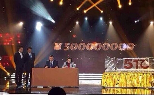 圖為2014年,湖南衛(wèi)視廣告“2015年媒體推廣暨廣告招商會”現(xiàn)場,某廠商拋下5億元將湖南衛(wèi)視某檔綜藝節(jié)目冠名費收入囊中。