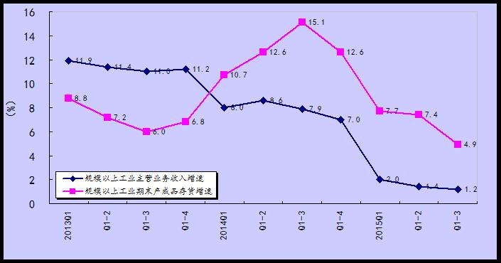房地產(chǎn)開發(fā)投資增速回落除了直接影響固定資產(chǎn)投資增速回落外,還影響工業(yè)增加值增速回落。首先,房地產(chǎn)開發(fā)投資增速回落影響到鋼材、水泥、平板玻璃等工業(yè)產(chǎn)品的生產(chǎn)。前三季度,鋼材產(chǎn)量同比僅增長(zhǎng)1.1%,水泥同比下降4.7%,平板玻璃下降7.5%,這些工業(yè)產(chǎn)品產(chǎn)量的低速增長(zhǎng)或下降影響到工業(yè)增加值增速回落。其次,房地產(chǎn)市場(chǎng)也影響到相關(guān)消費(fèi)類產(chǎn)品的生產(chǎn)。前三季度,家用電冰箱產(chǎn)量同比下降1.7%;家用冷柜僅增長(zhǎng)0.9%。這些耐用消費(fèi)品的下降或低速增長(zhǎng),也影響到工業(yè)增加值增速回落。