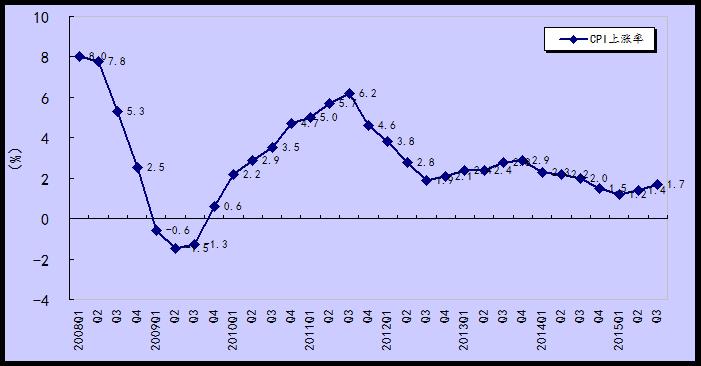 今年一、二、三季度,居民消費(fèi)價(jià)格分別上漲1.2%、1.4%和1.7%,呈逐季上升的走勢(shì)(圖7)。