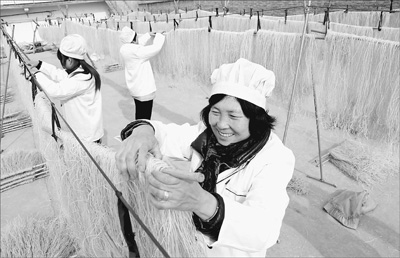 圖為上店鎮(zhèn)西街村豫陽(yáng)薯業(yè)種植專業(yè)合作社的社員在晾曬粉條。