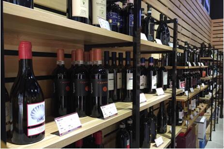 在意大利館,貨架上整齊排放的紅酒。(人民網(wǎng) 張曉赫攝)