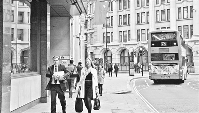 倫敦金融城2012年正式啟動(dòng)人民幣業(yè)務(wù)中心計(jì)劃,幾年來(lái)該計(jì)劃發(fā)展迅速,擴(kuò)大了人民幣在國(guó)際貿(mào)易和投資中的使用。圖為行人從位于倫敦金融城的中國(guó)銀行倫敦分行前走過(guò)。