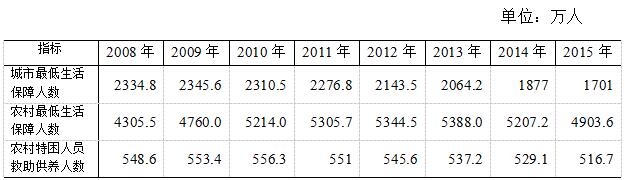 傳統(tǒng)救濟。2015年傳統(tǒng)救濟63.8萬人。