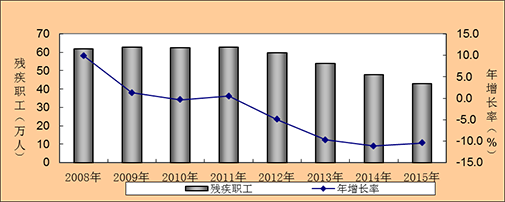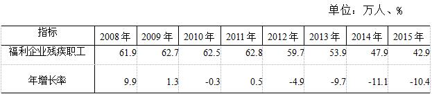 3. 為殘疾人提供服務的機構。截至2015年底,全國有為殘疾人提供服務的機構1.5萬個,吸納殘疾職工42.9萬人就業(yè),固定資產(chǎn)1778.8億元,實現(xiàn)利潤81.4億元。