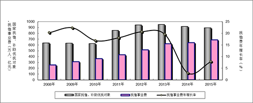 截至2015年底,全國各類辦理了注冊登記手續(xù)的提供住宿的社會服務機構3.1萬個,其中登記注冊為事業(yè)單位的機構1.8萬個,比上年增長12.5%,登記注冊為民辦非企業(yè)單位的1.2萬個。床位393.2萬張。收留撫養(yǎng)231.6萬人。