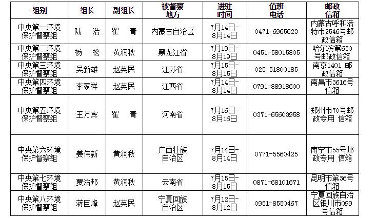 2016第一批中央環(huán)保督察工作8個(gè)督查組全部進(jìn)駐(表)