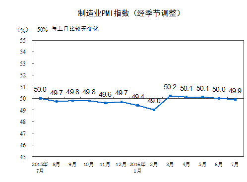 7月份制造業(yè)采購經(jīng)理指數(shù)為49.9%