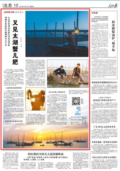 人民日?qǐng)?bào):太湖生態(tài)養(yǎng)蟹謀求環(huán)保經(jīng)濟(jì)效益雙贏