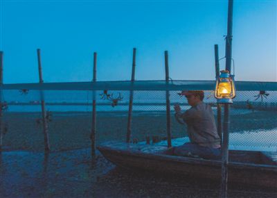 秋風(fēng)起,成熟的大閘蟹紛紛爬上圍網(wǎng)。