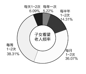 38.31%的受訪者認(rèn)為,子女看望老人的頻率應(yīng)當(dāng)維持在每周1—2次,36.07%的受訪者認(rèn)為應(yīng)當(dāng)維持在每月1—2次,有6.09%的受訪者認(rèn)為子女應(yīng)當(dāng)每天1—2次看望老人。