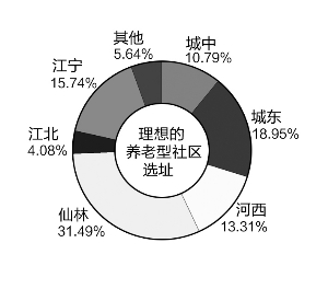 在理想的養(yǎng)老型社區(qū)選址當(dāng)中,城東由于獨(dú)享紫金山一帶優(yōu)美舒適的自然環(huán)境,有18.95%的受訪者愿意在此度過(guò)老年生活,城東往東的仙林關(guān)注度也很高,有31.49%的被訪者希望能在此度過(guò)晚年。這意味著,有5成的被訪者希望在南京城市的東邊度過(guò)晚年生活。