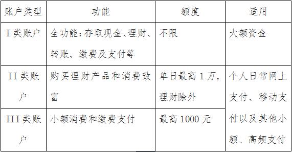 何為Ⅰ類戶?據(jù)了解,今年4月1日起,中國人民銀行曾根據(jù)開戶申請人身份信息核驗方式和風(fēng)險等級,將個人銀行結(jié)算賬戶分為Ⅰ、Ⅱ、Ⅲ類。Ⅰ類是“全能型”賬戶,通過柜臺開立,Ⅱ類是可以儲蓄、理財?shù)荒苡糜诔垂傻?ldquo;限制級”賬戶,Ⅲ類是賬戶余額不超過1000元的“小額消費型”賬戶,后兩類均通過電子渠道開立。此舉旨在通過個人“錢包”和“金庫”分開使用的辦法,達(dá)到防范詐騙、保護(hù)個人賬戶安全的目的。