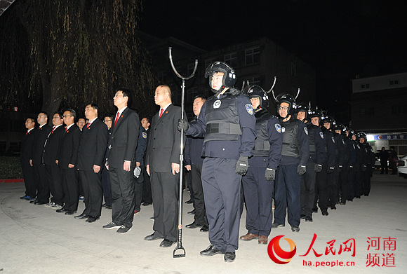 林州市人民法院大院內(nèi),警燈閃爍。防刺服、防突鋼叉、捕捉器、伸縮梯、無人機……50余名執(zhí)行干警分成12個執(zhí)行小組,整裝待發(fā)隨即開展“凌晨突擊”。