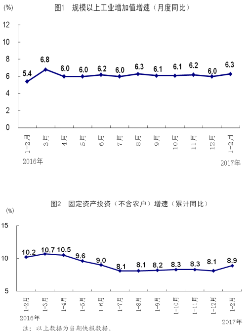 人民網(wǎng)北京3月14日電 (楊曦)國家統(tǒng)計(jì)局今日發(fā)布數(shù)據(jù)顯示,2017年1-2月份,國民經(jīng)濟(jì)主要指標(biāo)出現(xiàn)積極變化,發(fā)展態(tài)勢繼續(xù)改善,整體運(yùn)行延續(xù)了去年下半年以來穩(wěn)中向好的態(tài)勢。