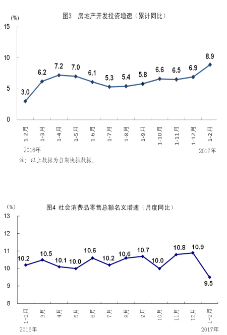 總的來看,1-2月份國民經(jīng)濟(jì)延續(xù)了去年下半年以來穩(wěn)中向好發(fā)展態(tài)勢,積極變化累積增多,發(fā)展態(tài)勢持續(xù)改善,為推進(jìn)全年經(jīng)濟(jì)社會發(fā)展目標(biāo)任務(wù)打下了好的基礎(chǔ)。同時應(yīng)當(dāng)看到,國際環(huán)境依然錯綜復(fù)雜,不穩(wěn)定不確定因素仍然較多,國內(nèi)改革發(fā)展任務(wù)仍十分艱巨,發(fā)展的內(nèi)生動力仍需加強(qiáng)。下階段,要更加緊密團(tuán)結(jié)在以習(xí)近平同志為核心的黨中央周圍,深入貫徹落實(shí)中央經(jīng)濟(jì)工作會議精神和政府工作報(bào)告的決策部署,堅(jiān)持穩(wěn)中求進(jìn)的工作總基調(diào),堅(jiān)持新發(fā)展理念,堅(jiān)持以推進(jìn)供給側(cè)結(jié)構(gòu)性改革為主線,適度擴(kuò)大總需求,加強(qiáng)預(yù)期引導(dǎo),深化創(chuàng)新驅(qū)動,不斷鞏固國民經(jīng)濟(jì)穩(wěn)中向好的發(fā)展態(tài)勢。
