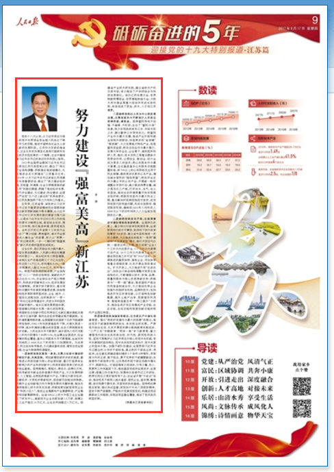 黨的十八大以來(lái),以習(xí)近平同志為核心的黨中央帶領(lǐng)全黨全國(guó)人民走過(guò)了極不平凡的歷程,推動(dòng)中國(guó)特色社會(huì)主義進(jìn)入新的發(fā)展階段。江蘇作為東部沿海省份,過(guò)去五年的發(fā)展變化是我們國(guó)家所發(fā)生的歷史性變革的一個(gè)縮影,這當(dāng)中凝結(jié)著習(xí)近平總書記的親切關(guān)懷和悉心指導(dǎo)。