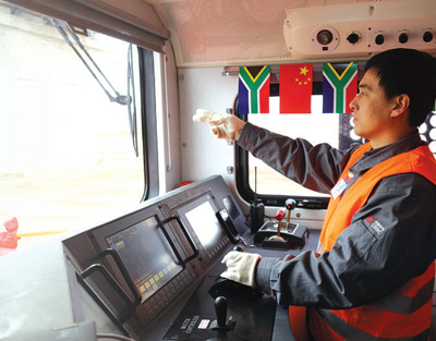 中車(chē)大連機(jī)車(chē)公司駕駛員在試驗(yàn)將出口南非的內(nèi)燃機(jī)車(chē)。
