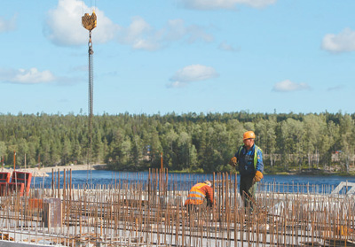 8月15日,在俄羅斯西北部卡累利阿共和國(guó)凱姆河畔,工人在別洛巴羅什水電站施工現(xiàn)場(chǎng)工作。別洛巴羅什水電站項(xiàng)目是俄羅斯首個(gè)由金磚國(guó)家新開(kāi)發(fā)銀行提供融資支持的項(xiàng)目。