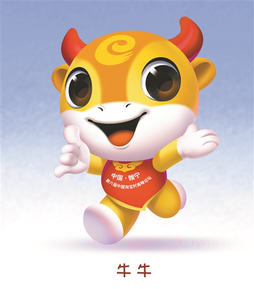 第六屆中國淘寶村高峰論壇吉祥物“牛牛”取材睢寧漢畫像石牛耕圖,“牛”和“六”諧音,故而取名“牛牛”,“e”字化身牛天旋,牛牛手勢為“666”,寓意“棒棒噠”,體現(xiàn)了新農(nóng)村緊密與“互聯(lián)網(wǎng)+”的時代特質(zhì),凸顯了網(wǎng)絡(luò)帶動新舊動能轉(zhuǎn)換,發(fā)掘電子商務(wù)在支持創(chuàng)業(yè)、帶動就業(yè)、減貧脫貧、鄉(xiāng)村振興等方面的重要價值。牛作為農(nóng)耕文明的重要生產(chǎn)工具,今天成為第六屆中國淘寶村高峰論壇的代言人,結(jié)合睢寧文化以及中國農(nóng)村網(wǎng)絡(luò)銷售的蓬勃發(fā)展,突出了“改革與振興,電商的力量”的高峰論壇主題,具有較強的親和力與傳播力。