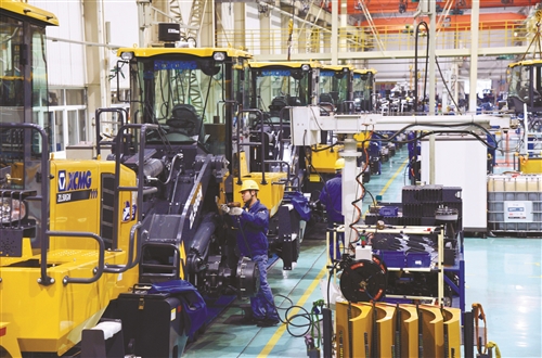 11月10日,位于徐州經(jīng)濟(jì)技術(shù)開發(fā)區(qū)的徐工鏟運(yùn)機(jī)械事業(yè)部裝配車間,工人在生產(chǎn)線上緊張忙碌著,一輛輛嶄新的五噸位裝載機(jī)產(chǎn)品有序下線。作為徐工集團(tuán)核心骨干企業(yè),徐工鏟運(yùn)機(jī)械事業(yè)部大噸位裝載機(jī)智能化制造產(chǎn)業(yè)基地,是行業(yè)內(nèi)首家使用汽車工業(yè)級積放式運(yùn)輸鏈的企業(yè),生產(chǎn)過程實(shí)現(xiàn)自動行走、自動運(yùn)輸、自動裝配零部件等智能化操作。徐州日報全媒體記者 陳艷 攝