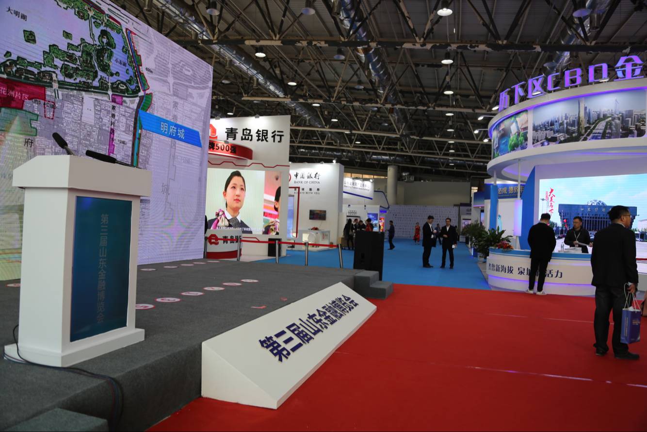 11月30日下午,記者在舜耕國(guó)際會(huì)展中心看到,第三屆山東金博會(huì)的展區(qū)場(chǎng)館已基本搭建完畢,各金融機(jī)構(gòu)將自己的特色金融產(chǎn)品擺放在顯眼位置,進(jìn)行展區(qū)的精致打造,只待金博會(huì)啟幕,給大眾呈現(xiàn)一場(chǎng)精彩絕倫的金融盛筵。