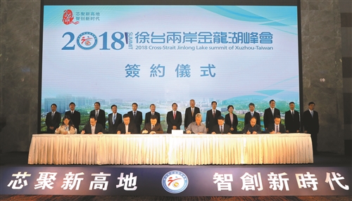 徐州日?qǐng)?bào)訊(全媒體記者 李曉航)11月27日上午,以“芯聚新高地,智創(chuàng)新時(shí)代”為主題的2018徐臺(tái)兩岸金龍湖峰會(huì)在徐州經(jīng)濟(jì)技術(shù)開發(fā)區(qū)舉行。首屆徐臺(tái)兩岸金龍湖峰會(huì)的成功舉辦,為徐臺(tái)兩地深化產(chǎn)業(yè)合作搭建了平臺(tái)、拓展了空間,標(biāo)志著徐臺(tái)合作站在新的起點(diǎn)、躍上新的高度。
