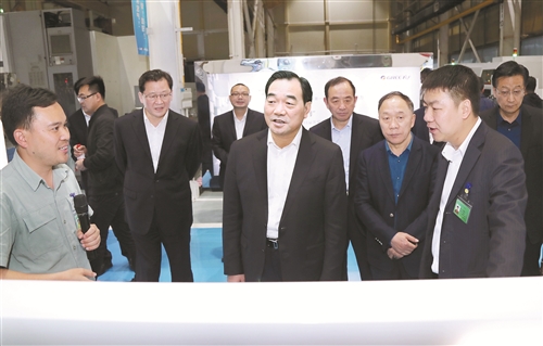 周鐵根等領(lǐng)導(dǎo)在珠?疾旄窳瘓F(tuán)總部創(chuàng)新中心。