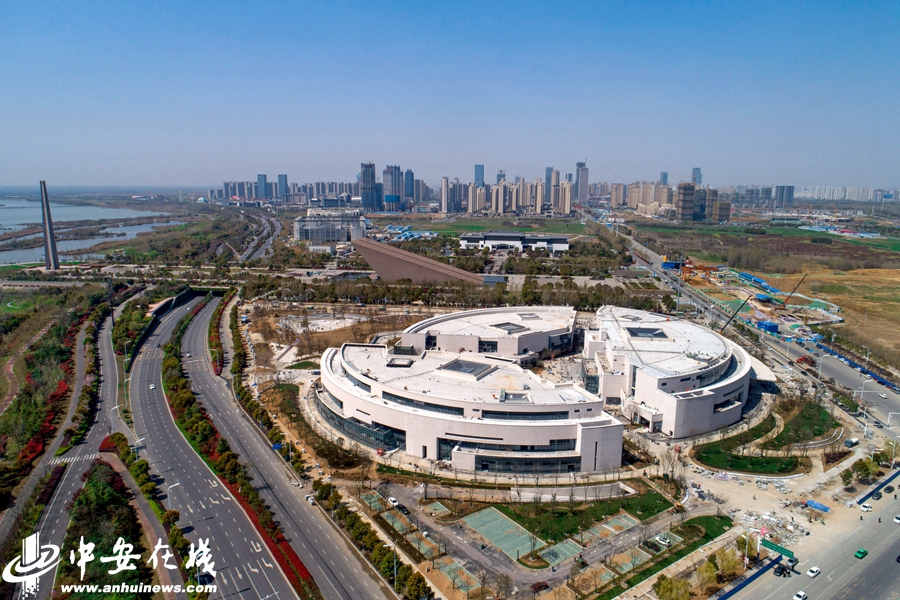 中安在線、中安新聞客戶端 3月31日,記者利用無人機航拍安徽創(chuàng)新館全景。位于濱湖新區(qū)渡江戰(zhàn)役紀念館東側的安徽創(chuàng)新館已于近期完成全部室內(nèi)裝飾、設備安裝、景觀綠化、室外鋪裝及綠化栽植工作,將于4月24號開館。