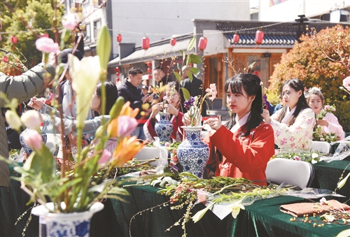 ◎徐州日報全媒體記者 孟祥 通訊員 胡寶 云想衣裳花想容,春風拂檻露華濃。春日的戶部山,嫩綠初萌,春梅先發(fā),正是踏青賞花好時節(jié)。 3月30日上午,“青春戶部山,踏青賞花季”大型民俗風情活動在云龍區(qū)戶部山古民居景區(qū)拉開帷幕。由中青旅博匯(徐州)園區(qū)管理有限公司和光大銀行徐州分公司主辦的2019北京世園會開幕倒計時一個月暨中青旅青春戶部山形象展示中心揭牌儀式在此舉行。 花朝游園 感受千年戶部山的青春魅力 活動期間,適逢中華民族傳統節(jié)日“花朝節(jié)”,戶部山古民居景區(qū)以此為主題,舉辦規(guī)模宏大的“花朝迎春”活動。200名身著漢服的女大學生在這里參與花神祭祀、漢服游行、花車游行等活動,與游人一起賞花祈福。 “今逢己亥花朝節(jié),乃百花之誕辰,群卉之芳時,今聚首于徐州戶部山,以酒香果樂,祭百花神。”上午9點,花神祭祀正式開始,12位身著漢服的“花神”從燦若朝霞的花叢中走上場,輕舒廣袖,吟誦對春天的贊美。 “折纖腰以微步,呈皓腕于輕紗”,古民居建筑群內,娉婷裊娜的“百花仙子”們閑庭散步于白墻黛瓦之中,撫琴揮墨,烹茶賞花。游人們與之一起行飛花令、品鮮花餅,感受花朝節(jié)及兩漢文化的獨特魅力。 “這真是一次很有意義的活動,能夠參與其中我深感榮幸。”“花神”扮演者李可欣告訴記者,一座戶部山記載了半部徐州史,希望更多的人在這里感悟傳統社會仁、義、禮、智、信等人文精神。 花朝節(jié)也叫花神節(jié),俗稱百花生日,流行于東北、華北、華東、中南等地,一般于農歷二月初二、二月十二或二月十五舉行。節(jié)日期間,人們結伴到郊外游覽賞花,稱為“踏青”,姑娘們剪五色彩紙粘在花枝上,稱為“賞紅”。 “春城無處不飛花”,飛花令源于古人詩詞之趣,因其屬性高雅,深受文人墨客的青睞。為弘揚中華傳統詩詞文化,戶部山古民居景區(qū)特借花朝迎春活動,引入改良版的“飛花令”文字游戲,讓人們在春暖花開之時“偷得半日閑散”。徜徉于擁有500年樹齡的鄭家大院古銀杏樹下,經由詩詞的美境中,找回心靈的恬淡與寧靜。 戶部山民俗博物館內,精心準備的民樂、朗誦、舞蹈表演分散于古銀杏、伴云亭、東花園等各個院落,營造了百花齊放、繁華似錦的景象,為游客提供一場豐富的視覺+聽覺的休閑游盛宴。投壺是從先秦延續(xù)至清末的中國傳統禮儀和宴飲游戲,投壺禮來源于射禮,在繡樓前及東花園內,游客還可體驗古代投壺游戲。館內還設有文化產品攤位點,分布于各個院落,有發(fā)簪、配飾、香薰、手工香皂、書畫等手工藝品。 本次活動也是徐州市文化旅游局“春明”活動的重要組成部分。戶部山作為徐州城市中心區(qū)域的重要景區(qū),地理位置優(yōu)越,人文環(huán)境獨特,是展示徐州城市旅游形象、宣傳徐州作為淮海經濟區(qū)中心城市的一張響當當的名片。 “通過這一系列活動,一方面?zhèn)鞒泻霌P中華民族悠久的歷史文化,另一方面也豐富旅游資源,給游客帶來全新的旅游體驗。”戶部山古民居景區(qū)負責人李春雷說。 精致+復古 將北京世園會“搬進”徐州戶部山 2019年中國北京世界園藝博覽會(簡稱北京世園會)是經國際展覽局認可、國際園藝生產者協會批準,由中國政府主辦、北京市承辦的最高級別的世界園藝博覽會,也是我國繼1999年昆明世界園藝博覽會后第二次舉辦A1類世界園藝博覽會,更是今年我國主場外交活動的重要組成部分。 今年4月29日至10月7日,世園會將在北京延慶舉行,會期162天,預計參觀人數不少于1600萬人次。截至目前,已有110多個國家和國際組織確認參展,創(chuàng)造了歷屆世園會數量之最。 2018年7月22日,云龍區(qū)政府與中青旅控股股份有限公司旗下中青博聯,就戶部山歷史文化街區(qū)綜合運營管理項目正式簽署合作協議,探索建立戶部山歷史文化街區(qū)運管分離新模式。中青旅作為北京世園會旅游服務領域的唯一全球合作伙伴,正在全面參與世園會的運營籌備,承接了場館運營管理、票務銷售等主要業(yè)務。 為配合北京世園會組委會全面展示大風采,讓大家能夠第一時間了解到北京世園會的最新資訊并向徐州市民銷售門票,特在戶部山設立“2019北京世園會中青旅票務展示中心”。走進剛揭幕的青春戶部山形象展示中心,這里既有古香古色的老徐州味道,更有富有青春活力的本土文創(chuàng)產品,還有許多關于北京世園會的周邊商品,未來這里將成為展示戶部山城市旅游形象的一個重要窗口和平臺。 |