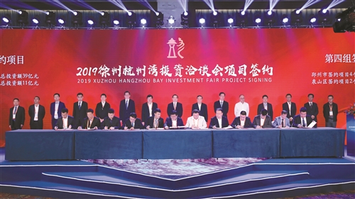 一大批項(xiàng)目在2019徐州杭州灣投資洽談會(huì)上成功簽約。 本報(bào)全媒體記者 徐劍 齊浩 攝