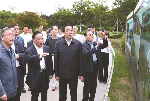 魏禮群等領(lǐng)導(dǎo)和專家學(xué)者在市委書(shū)記周鐵根陪同下考察云龍湖綜合改造工程。