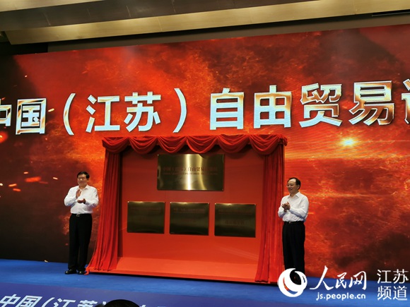 人民網(wǎng)南京8月30日電 (記者尹曉宇)中國(江蘇)自由貿(mào)易試驗區(qū)揭牌儀式30日在南京舉行。江蘇省委書記、省人大常委會主任婁勤儉,江蘇省委副書記、省長吳政隆共同為中國(江蘇)自由貿(mào)易試驗區(qū)及南京、蘇州、連云港三個片區(qū)揭牌。婁勤儉發(fā)表講話,吳政隆宣讀國務(wù)院關(guān)于同意設(shè)立6個自由貿(mào)易試驗區(qū)的批復(fù)中涉及江蘇部分的內(nèi)容。