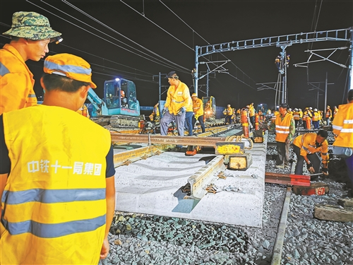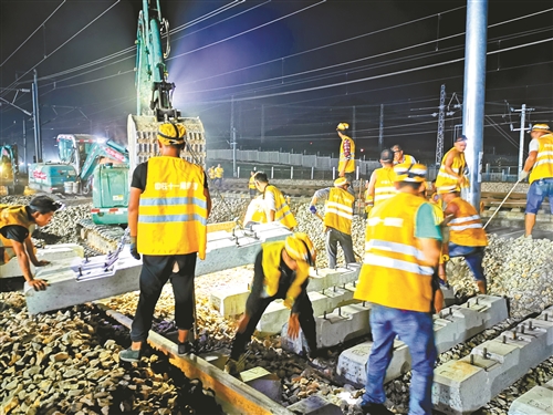 徐州東站京滬場站改建集中施工是將徐宿淮鹽鐵路京滬上下行聯(lián)絡(luò)線接入既有京滬高速鐵路,從9月5日開始到9月9日結(jié)束,連續(xù)5個天窗點施工,并且都是在京滬高速鐵路夜間停運以后進行,每一個天窗點都只有4個小時左右,時間緊、任務(wù)重,施工標準高、難度大。施工內(nèi)容包含道岔插鋪、撥接,更換列控、聯(lián)鎖、信息等軟件,新開通徐州東站京滬場信號聯(lián)鎖等多個環(huán)節(jié)。施工涉及工務(wù)、信號、供電等多個專業(yè),交叉作業(yè)頻繁,眾多工序同時進行,人員需求大、安全風險高,F(xiàn)場需要“見縫插針”充分利用好每一分鐘,每個作業(yè)環(huán)節(jié)都必須緊密銜接,確保在封鎖時間內(nèi)安全、優(yōu)質(zhì)完成施工任務(wù)。為確保此次施工安全有序,蘇北鐵路工程建設(shè)指揮部會同中鐵十一局集團徐宿淮鹽鐵路工程指揮部對施工方案進行了多次優(yōu)化和推演,中國鐵路上海局集團公司進行了信號模擬掛聯(lián)試驗及動態(tài)驗證,為大開通的順利實施提供了可靠保證。