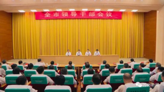 今天,蘇州召開全市領(lǐng)導(dǎo)干部會議。省委決定:藍(lán)紹敏同志任蘇州市委委員、常委、書記,周乃翔同志不再擔(dān)任蘇州市委書記、常委、委員職務(wù)! ∈∥N⒔M織部部長郭文奇出席會議并講話,省委組織部常務(wù)副部長王立平宣讀了省委有關(guān)決定。省委常委、市委書記藍(lán)紹敏在會上講話。市委副書記、市長李亞平作表態(tài)發(fā)言。