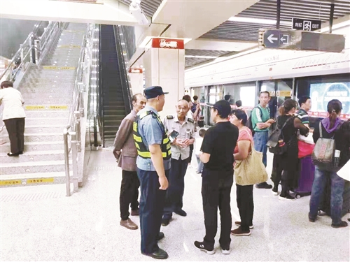 地鐵運(yùn)管工作人員為乘客提供服務(wù)。