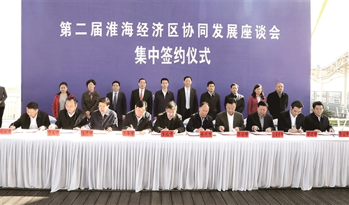 第二屆淮海經(jīng)濟區(qū)協(xié)同發(fā)展座談會舉行集中簽約儀式。 徐州日報全媒體記者 齊浩 攝
