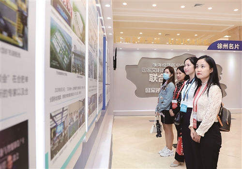 會(huì)場外的徐州宣傳展板吸引嘉賓駐足觀看。