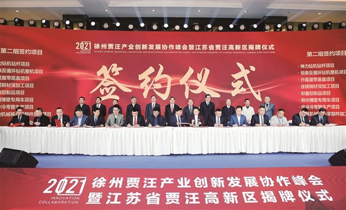 在2021徐州賈汪產(chǎn)業(yè)創(chuàng)新發(fā)展協(xié)作峰會暨江蘇省賈汪高新區(qū)揭牌儀式上,一批項目現(xiàn)場簽約。