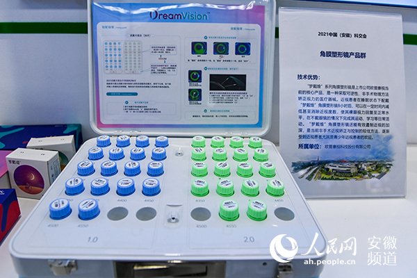 孩子近視是如今很多家長頭疼的問題。在科技成果展示現(xiàn)場,位于合肥高新區(qū)的歐普康視公司帶來了角膜塑形鏡產(chǎn)品群。