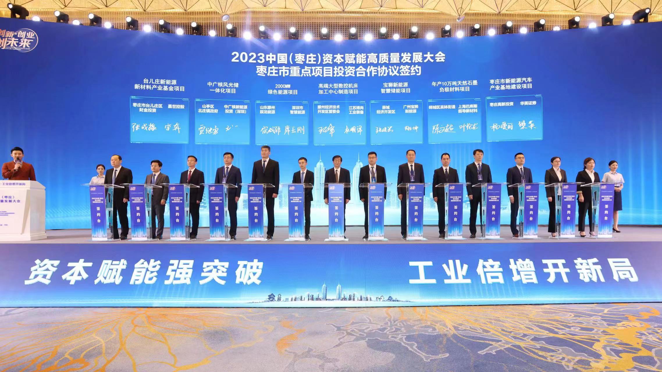大會現(xiàn)場, 12家重點金融機構(gòu)與市政府簽訂協(xié)議,在工業(yè)倍增計劃實施期間為棗莊提供2600億元的意向信貸資金;市財金控股集團與13家重點投資機構(gòu)簽訂戰(zhàn)略合作協(xié)議,設(shè)立總規(guī)模207億元的13支基金;集中簽約重點項目14個、總投資302億元。國資基金50人論壇秘書長、上海國有資本運營研究院有限公司資本服務(wù)中心主任謝招煌,上海廣慧并購研究院院長俞鐵成,前海股交投資控股公司聯(lián)席總裁蔡奕,中車國創(chuàng)私募基金公司總經(jīng)理張鵬,和君商學(xué)、和君科技董事長李鵬飛應(yīng)邀出席并作主旨演講。