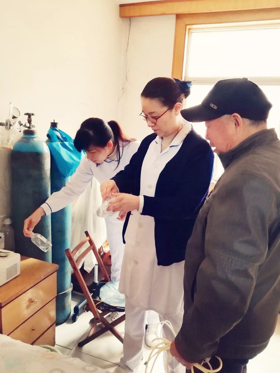 得知周辛燦和護(hù)士長(zhǎng)等人要來家訪的消息,邵老師和老伴早早在門口迎接。護(hù)士長(zhǎng)孔令娟和床位護(hù)士孔令利為邵老師測(cè)血糖5.3mmol/l,指脈氧95%,心率102次/分,血壓150/85mmhg。周醫(yī)師詢問了邵老師家庭氧療以及用藥、生活、休息等情況后,告知邵老師氧療時(shí)間不足會(huì)加重心臟負(fù)擔(dān),是導(dǎo)致心率快的主要誘因。堅(jiān)持持續(xù)低流量吸氧,能夠顯著改善肺功能,并予正確的家庭氧療指導(dǎo)。護(hù)士長(zhǎng)孔令娟仔細(xì)檢查了用氧裝置,并詢問氧氣裝置的消毒方式以及氧氣濕化液的選擇。邵老師的老伴說,在家里氧氣管始終沒有更換過,濕化液也沒有做到每日更換。細(xì)心的孔護(hù)士長(zhǎng)為邵老師帶來了新的氧氣管與霧化面罩,并指導(dǎo)氧氣裝置的安全維護(hù)與消毒的重要性,以防止交叉感染、病情復(fù)發(fā)而加重病情。邵老師和老伴對(duì)醫(yī)護(hù)人員的耐心細(xì)致指導(dǎo)表示感謝及配合。