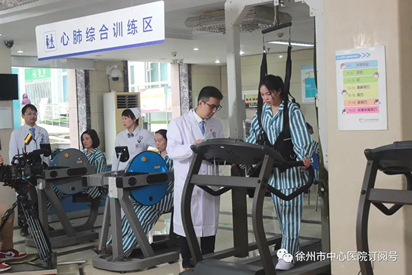 徐州市中心醫(yī)院心肺康復(fù)部成立于2011年,是一個集心肺運動能力評估、心腦血管運動危險分層、心肺功能訓(xùn)練為一體的部門。擁有美國GE公司運動平板機、動態(tài)血壓實時監(jiān)測、動態(tài)心電圖實時監(jiān)測;擁有意大利COSMED心肺運動設(shè)備,可以實時監(jiān)測心率及呼出氣分析,評價心肺功能;擁有液態(tài)抗阻設(shè)備以及功率自行車、樓梯機、跑步機等訓(xùn)練設(shè)備。